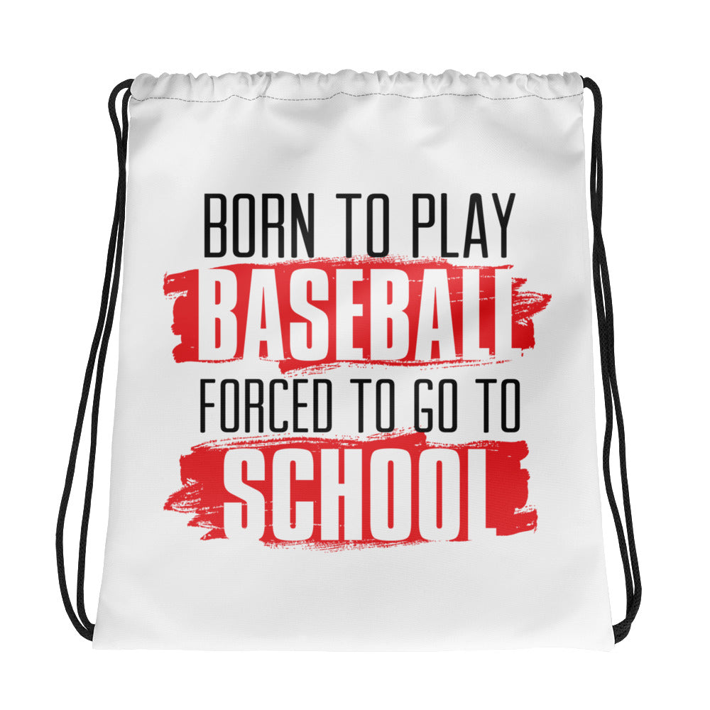 Born To Play Baseball Forced To Go To School Drawstring Bag